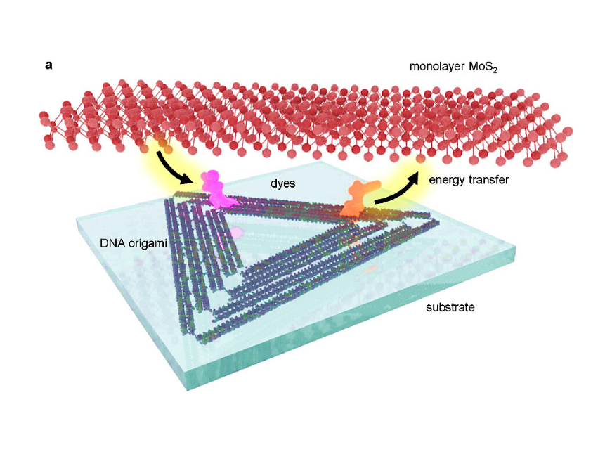 Научная группа предложила и испытала способ упорядоченного нанесения молекул органических красителей на монослой дисульфида молибдена методами ДНК-оригами: для этого проектируются наноструктуры из ДНК размером около 100 нанометров, несущие на себе молекулы красителей в заранее известных местах. Полученная конструкция помещается на чип и накрывается двумерным полупроводником.