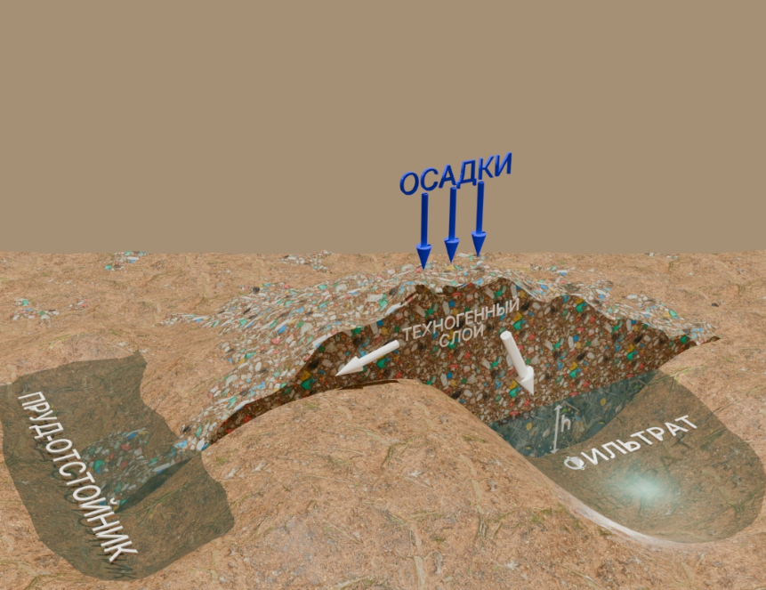 Несмотря на развитие технологий переработки, в России основным способом обращения с твердыми коммунальными отходами (ТКО) остается их складирование на специализированных полигонах. При разложении отходов образуются водорастворимые соединения. Атмосферные осадки, проходя через тело полигона, формируют фильтрат — жидкость, содержащую тяжелые металлы, органические и неорганические загрязнители. При эксплуатации основание полигона деформируется, возникают локальные понижения, где дренажная система перестает работать эффективно. В этих углублениях скапливается фильтрат, который затем может просачиваться через основание и при неблагоприятных условиях достигать грунтовых вод, питающих реки.