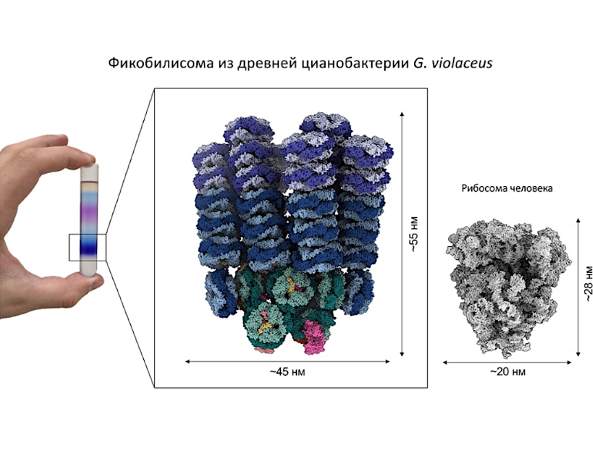 «Фикобилисомы из G. violaceus имеют линейные размеры более 45х55 нанометров, то есть вдвое больше человеческой рибосомы. На решение задачи по определению структуры такого комплекса потребовались месяцы кропотливой работы, головоломок и вычислений. Фикобилисома имеет сложную архитектуру, уникальность которой обеспечивается так называемыми линкерными белками, структуру которых нам удалось определить впервые. Многообразие белков и сложность их организации в фикобилисоме поражают воображение. Эта невероятная красота и гений природы не перестают удивлять», — рассказала Анна Бурцева, младший научный сотрудник лаборатории инженерной энзимологии ФИЦ Биотехнологии РАН.